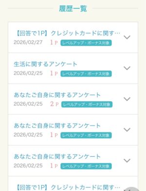 アンケート回答は簡単なものだと1掛からず終わります。内容によっては5分以上かかるものもあります。