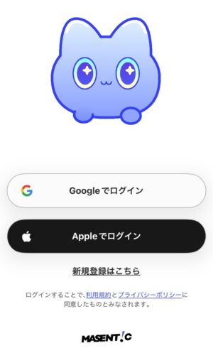 GoogleかAppleアカウントでログインするか、新規会員登録をします。