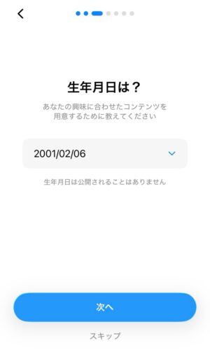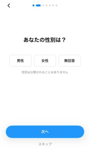 続いて、ニックネーム、性別、生年月日を設定します。