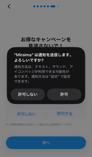 続いて、アプリの広告表示設定と通知設定をします。