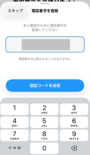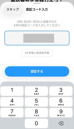 最後に、電話番号を登録しSMS認証します。