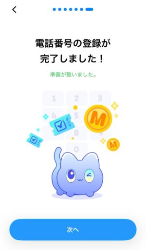 SMS認証が完了すると設定は終わりです。