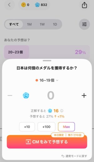 注意が必要なのは、予想クイズに投票するためにはコインが必要な点です。