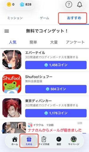 初回ログインなど簡単な条件でまとまったコインを獲得できるのでオススメです。